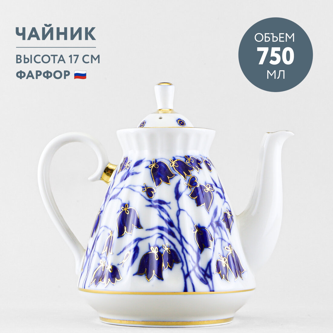 Чайник заварочный 750 мл. Форма «Лучистая», рисунок «Колокольчики». Фарфор. Императорский фарфоровый завод ИФЗ ЛФЗ: сравнение цен, характеристики, фото, актуальное наличие и цены.