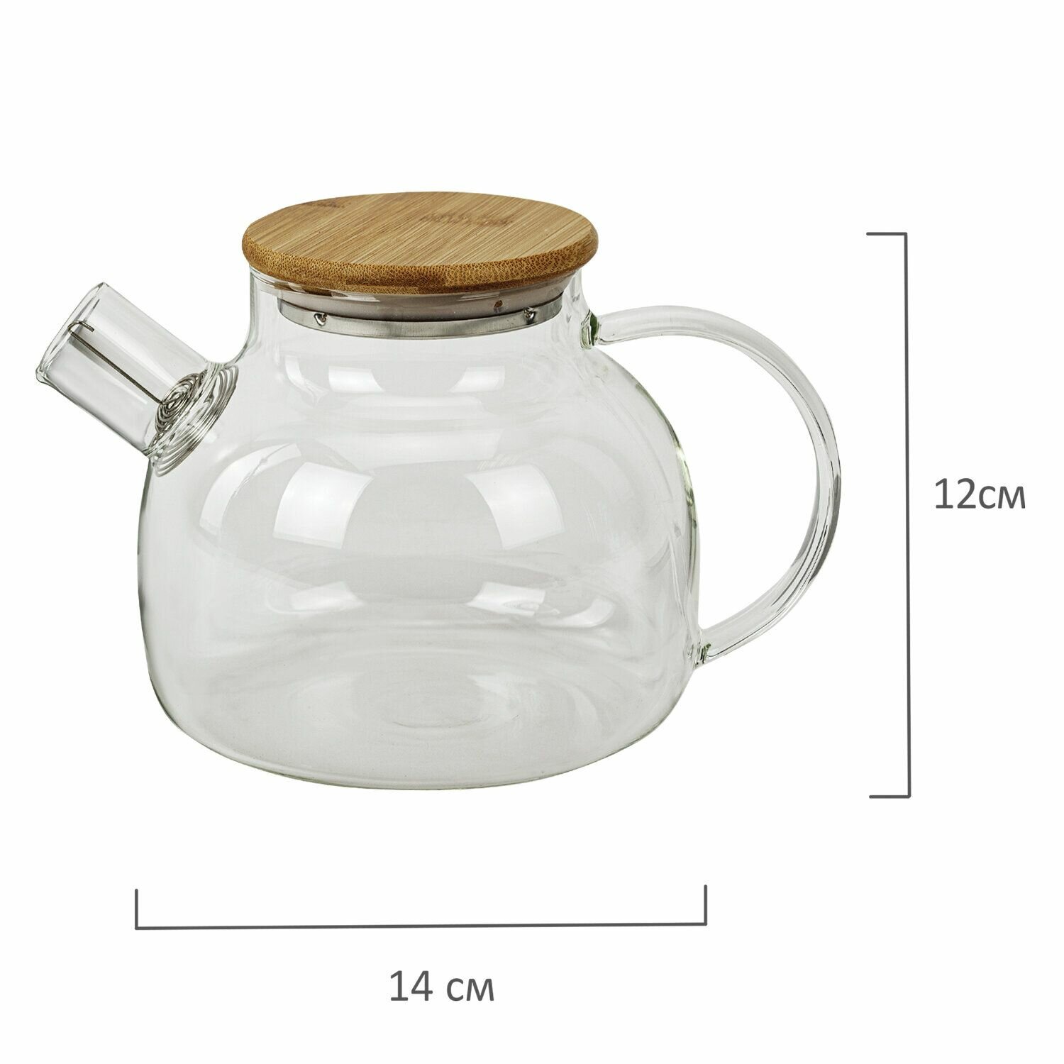 чайник заварочный - 1 шт., крышка бамбуковая с силиконовым уплотнителем - 1 шт., подставка для подогрева - 1 шт., ситечко-фильтр пружинка из нержавеющей стали в носике чайника - 1шт.