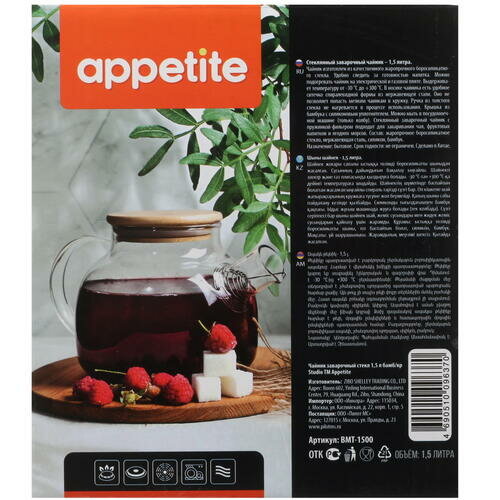 Купить Чайник заварочный Appetite Studio BMT-1500 прозрачный с доставкой по всей России. Чайник заварочный Appetite Studio BMT-1500 прозрачный: сравнение цен, характеристики, фото, актуальное наличие и цены.