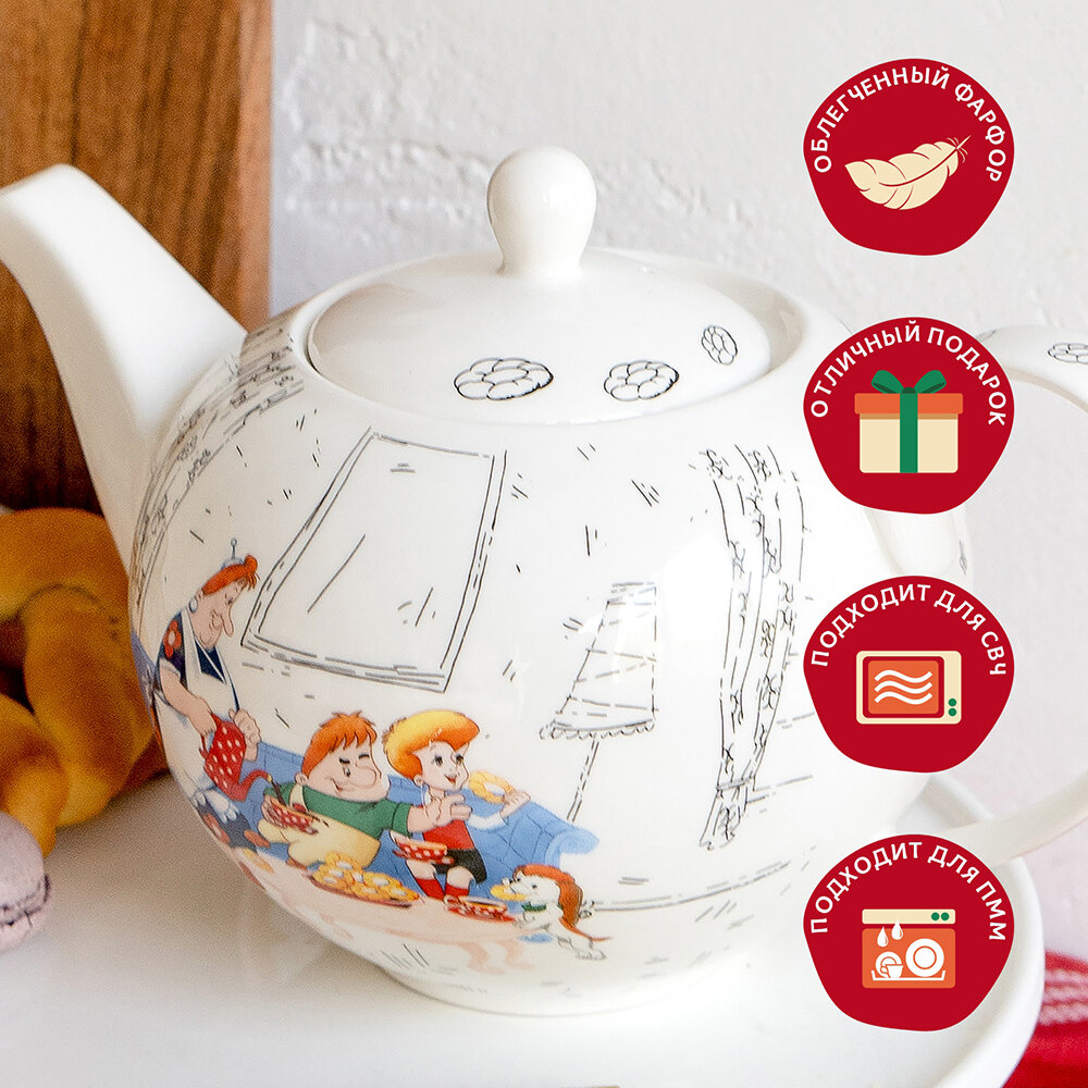 Чайник заварочный белый фарфоровый «Малыш и Карлсон» 1200 мл. Коралл: сравнение цен, характеристики, фото, актуальное наличие и цены.
