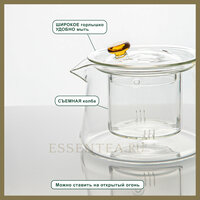 Чайник выполнен из стекла, что обеспечивает его прозрачность и позволяет наблюдать за процессом заваривания. Благодаря этому, вы всегда будете знать, когда напиток готов.