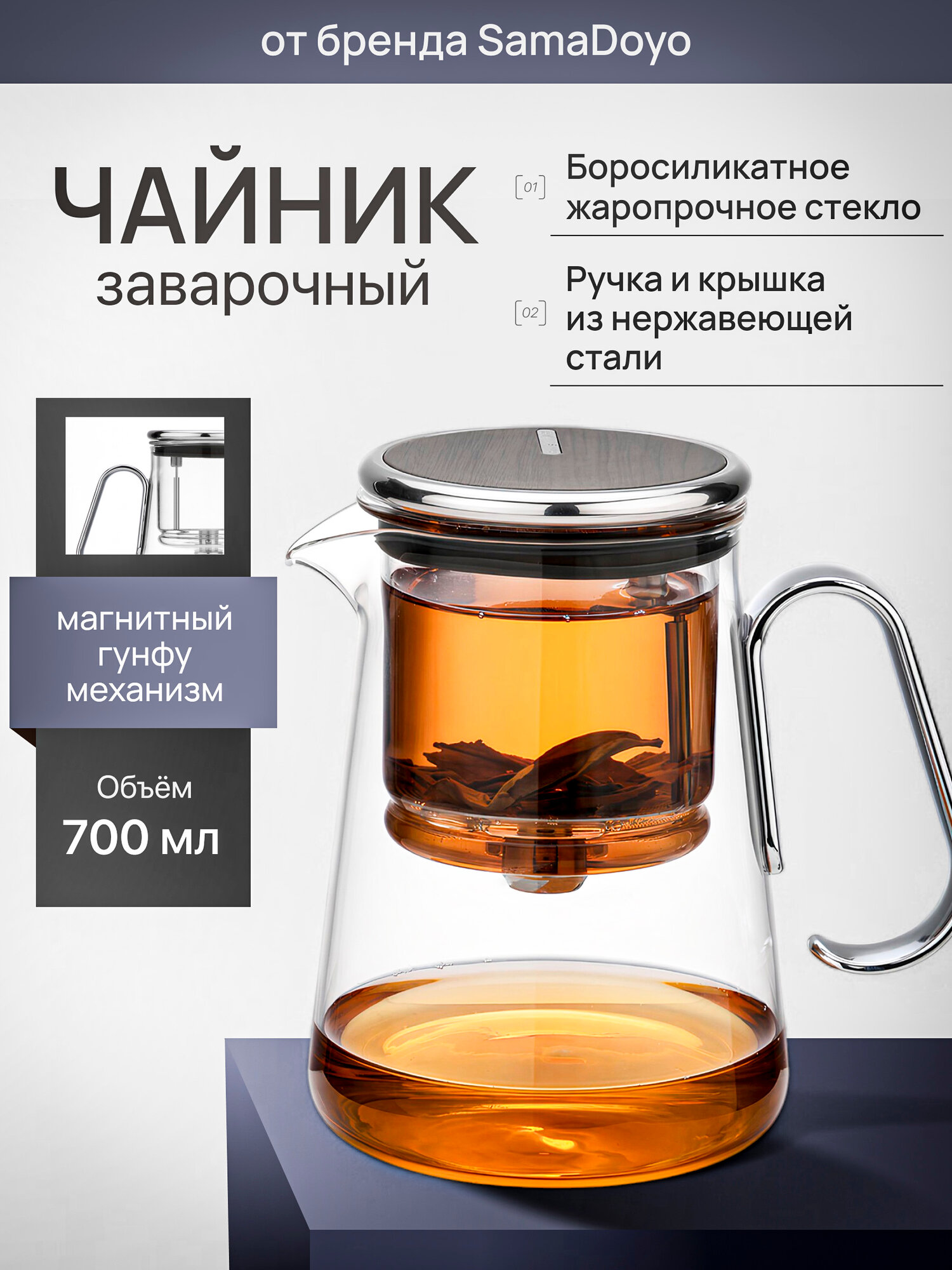 Чайник заварочный гунфу SamaDoyo Bonston Premium из боросиликатного стекла 700 мл для идеального чаепития: сравнение цен, характеристики, фото, актуальное наличие и цены.