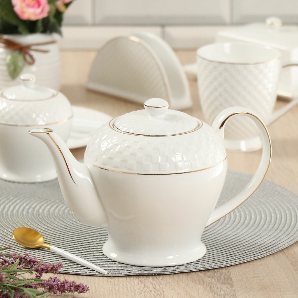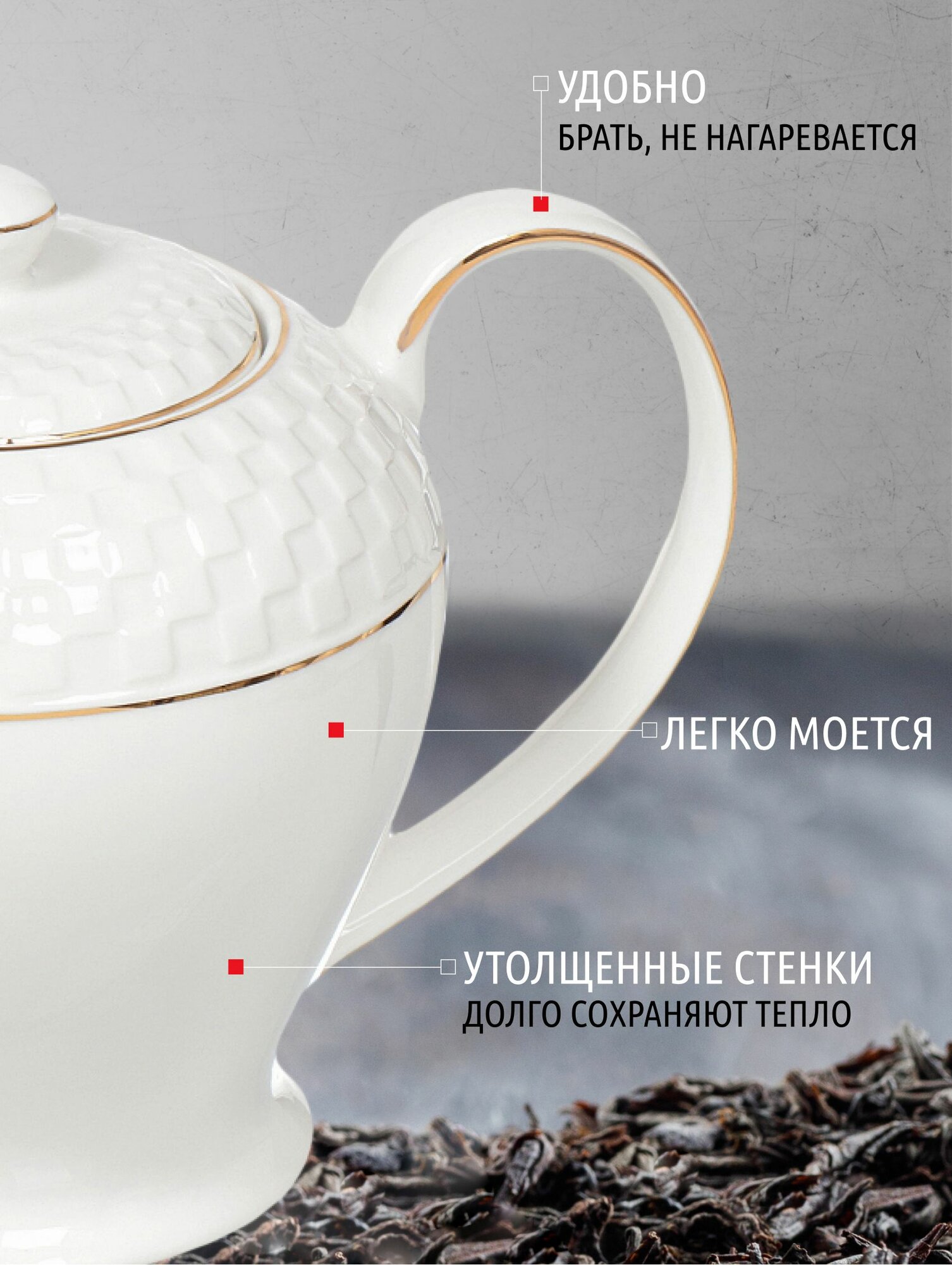 Купить Чайник заварочный керамический Daniks Кембридж 1 л с ситечком, белый, классический дизайн с доставкой по всей России.