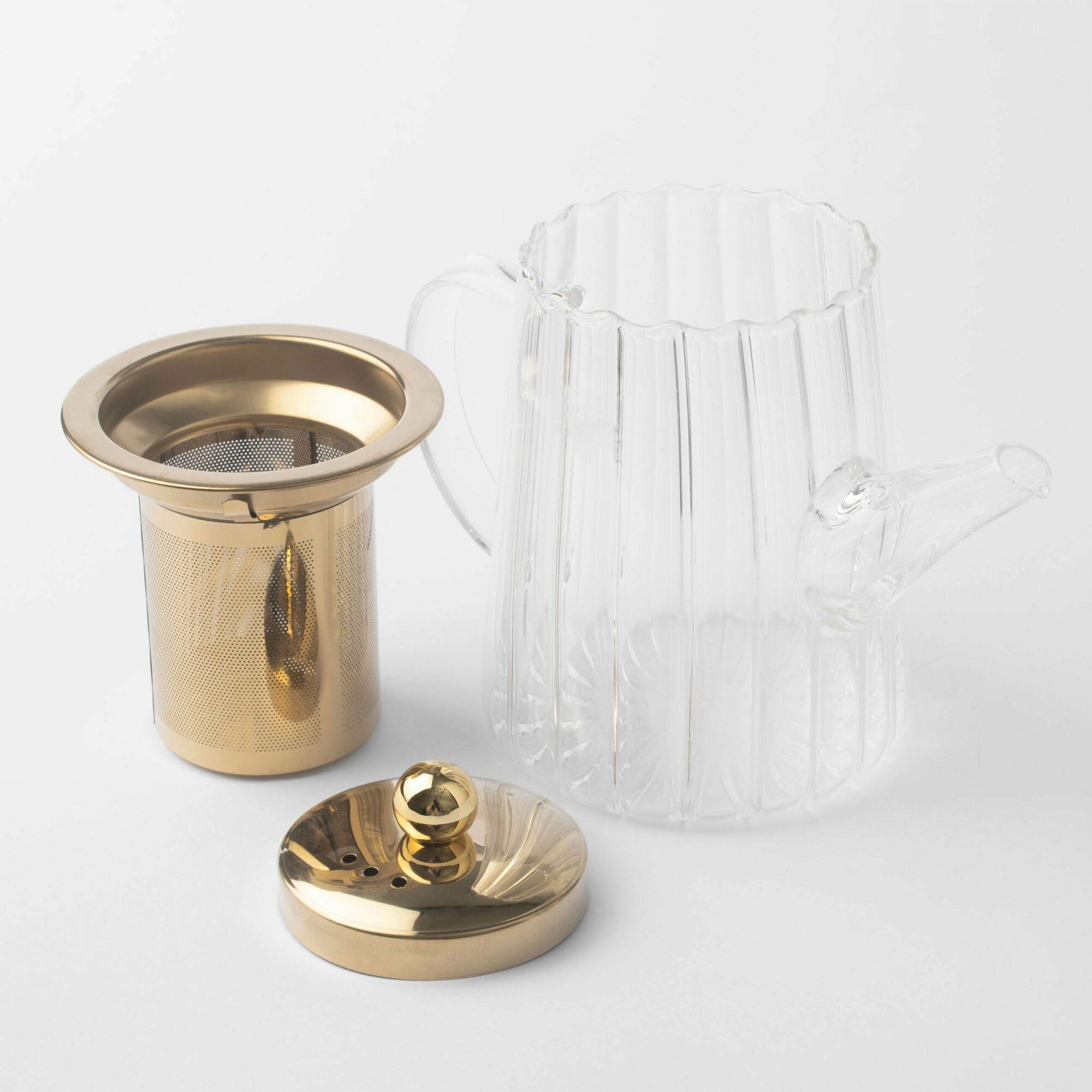 Купить Чайник заварочный, Kuchenland, 600 мл, стекло Б/сталь, золотистый, Camellia gold с доставкой по всей России.