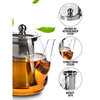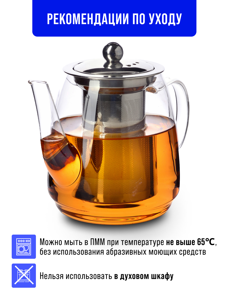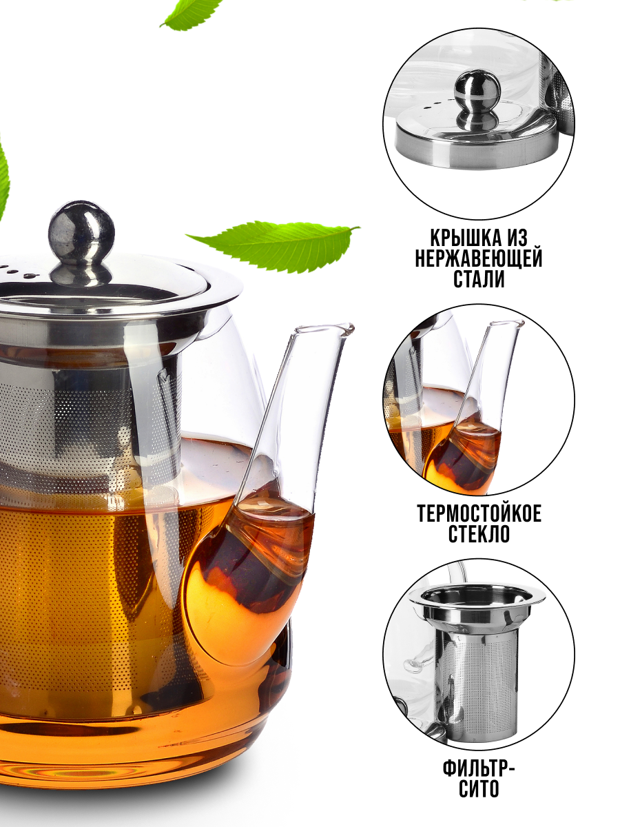 Крышка и съемный фильтр выполнены из нержавеющей стали, что гарантирует их долговечность и устойчивость к коррозии. Фильтр эффективно задерживает чаинки, обеспечивая чистоту напитка и позволяя наслаждаться его насыщенным вкусом и ароматом. Благодаря стеклянному корпусу чайника, вы можете наблюдать за процессом заваривания и видеть, как постепенно раскрываются цвета и ароматы вашего любимого чая. Это превращает обычное чаепитие в настоящий ритуал, который приносит удовольствие и расслабление.