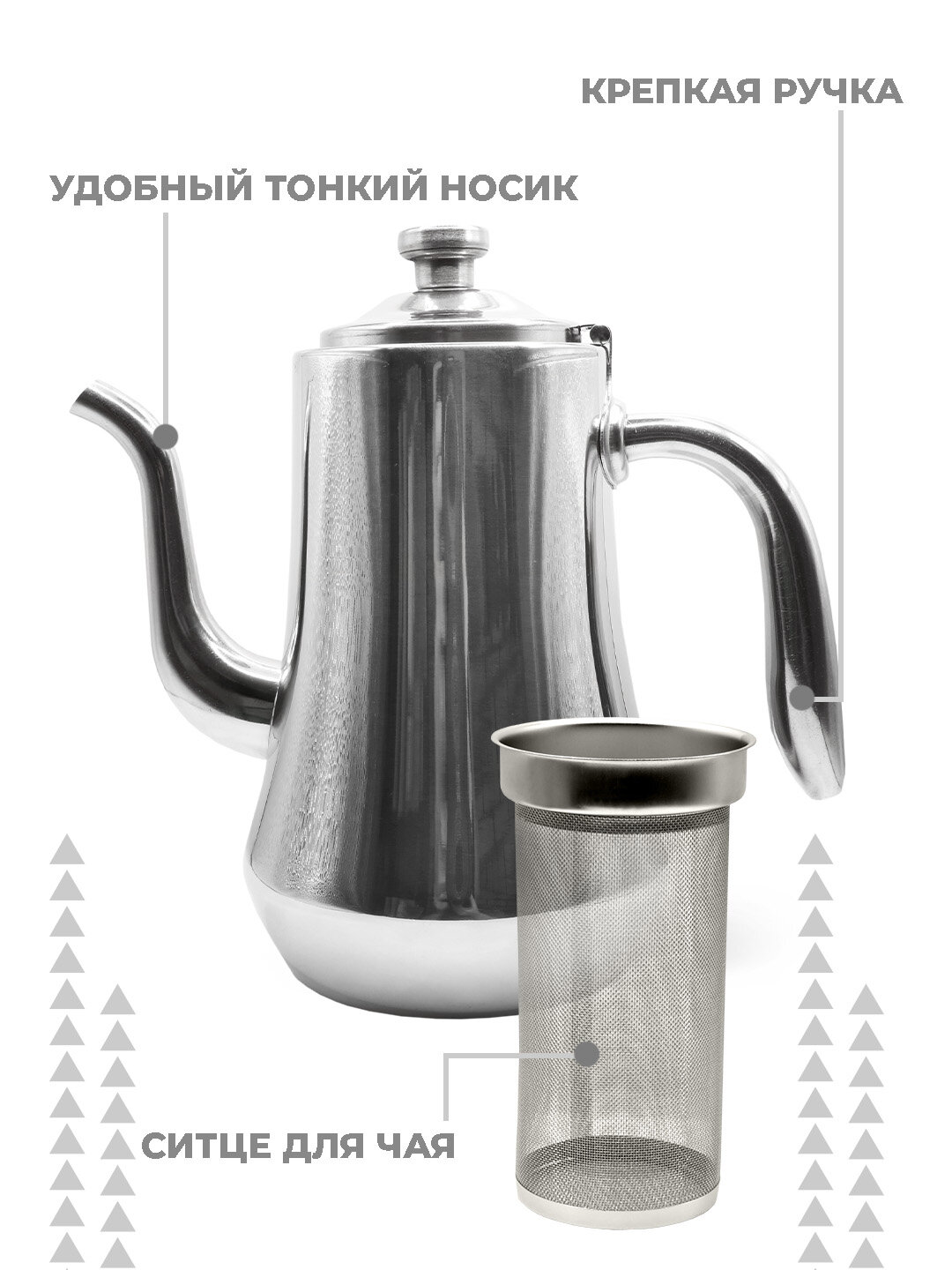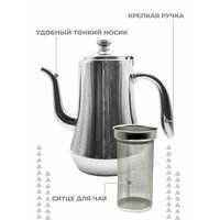 Чайник заварочный металлический Boomshakalaka, с ситечком, 1500 мл, цвет серебро: сравнение цен, характеристики, фото, актуальное наличие и цены.