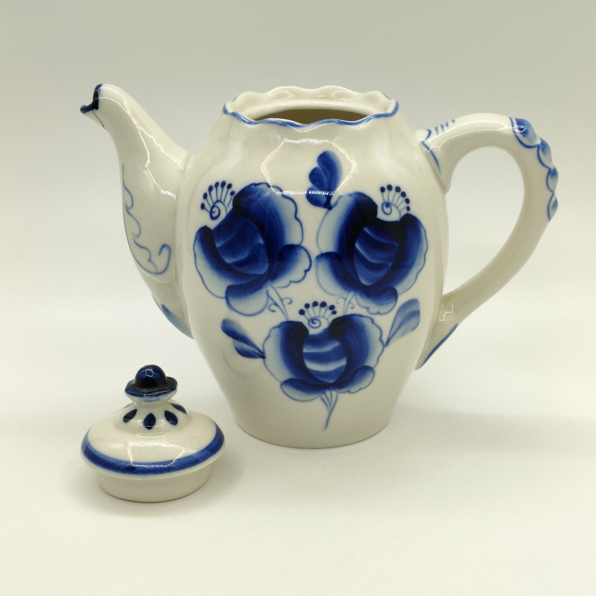 Чайник заварочный с цветочным декором, фарфор, роспись, Объединение «Гжель»