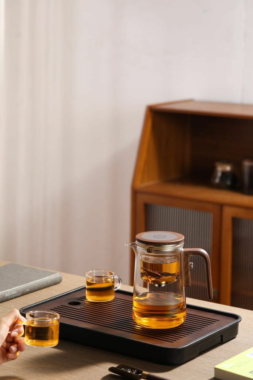 Погрузитесь в мир настоящего чаепития с чайником заварочным гунфу типот TEABURG! Этот стильный и элегантный чайник из боросиликатного жаропрочного стекла вместимостью 800 мл станет незаменимым аксессуаром на вашей кухне, в вашем ресторане, кофейне или чайной. Изготовленный из боросиликатного стекла, этот заварочный чайник не только прочен и долговечен, но также он прозрачный, что позволяет вам наблюдать за завариванием вашего любимого напитка. Стеклянный заварник уникальным запатентованным и уникальным механизмом пролива заварки сильно выделяется на фоне привычных чайников с колбой и кнопкой слива, сохраняя все его вкусовые качества. Удобная ручка из пластика под дерево, крышка из нержавеющей стали и особый проливной сливник делают использование чайника максимально комфортным и безопасным. Обычно заваренный напиток сливается вниз нажатием кнопки и в редких случаях - поворотом магнитной крышки. В данной модели механизм реализован иначе: рядом с ручкой есть рычаг с магнитом внутри, двигая который, Вы воздействуете на шарик внизу колбы - он либо удерживает заварку в колбе, либо позволяет ей слиться вниз в основной отсек чайника. Этот заварочный чайник также идеально подходит для чайной церемонии, добавляя нотку элегантности и стиля. Подарите себе или близким этот прекрасный чайник заварочный типот Coffee&Press в подарочной коробке - это отличный выбор для ценителей красивой посуды и настоящего чая. Помимо качественного боросиликатного стекла и пластика, здесь используется нержавеющая сталь стандарта SUS304 и SUS430. Не упустите возможность приготовить настоящий premium чай с помощью этого заварочного чайника - он станет вашим надежным спутником в чаепитии!