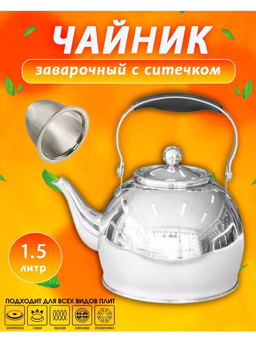 Купить Чайник заварочный Vicalina, нержавеющая сталь, 1,5 л, с ситечком, серебристый с доставкой по всей России. Чайник заварочный Vicalina, нержавеющая сталь, 1,5 л, с ситечком, серебристый: сравнение цен, характеристики, фото, актуальное наличие и цены.