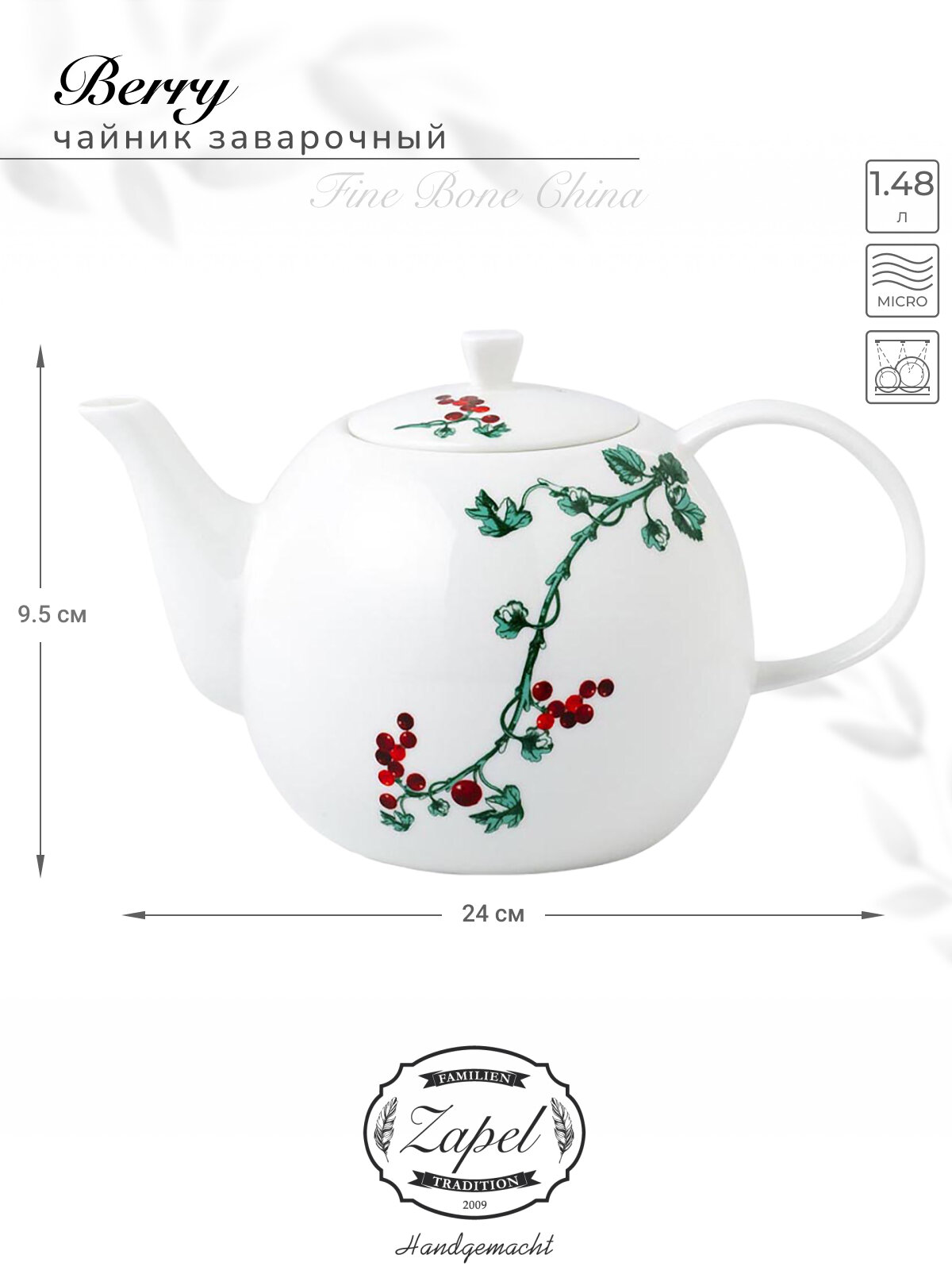 Купить Чайник заварочный Zapel Berry 1475 мл, костяной фарфор, с рисунком с доставкой по всей России. Чайник заварочный Zapel Berry 1475 мл, костяной фарфор, с рисунком: сравнение цен, характеристики, фото, актуальное наличие и цены.