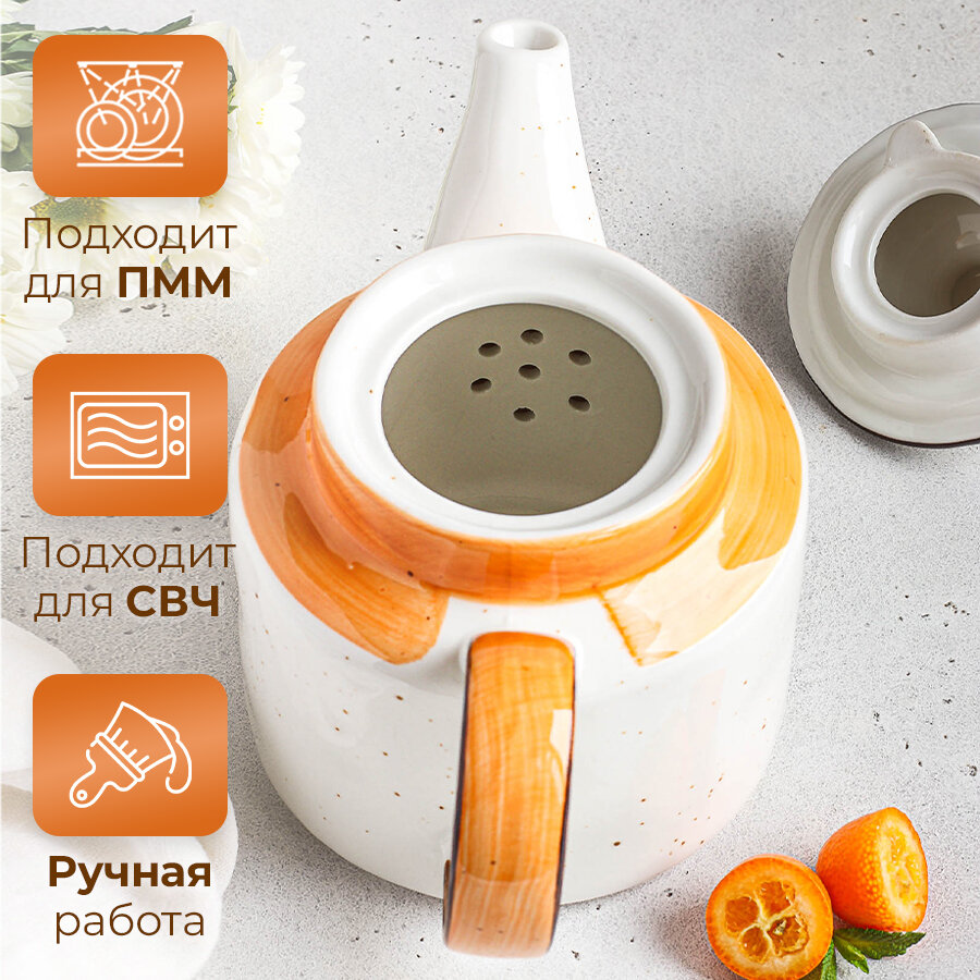 Заварочный чайник фарфоровый, серия Fusion, P.L. Proff Cuisine. Объем 700 мл, высота чайника без крышки 10 см, диаметр горла 5,5 см, внутри есть рассекатель для чаинок. Чайник заварной подходит для заваривания чая, травяных настоев, сбора трав или вкусного набора по вашему рецепту. Фарфор не впитывает запахи и ароматы, а вкус чая из такого заварника более насыщенный и ароматный. Серия Fusion столовой посуды P. L. Proff Cuisine - профессиональный ресторанный фарфор, который окрашивается вручную, поэтому каждое изделие имеет свою изюминку. Жаропрочный чайник для чая надолго сохранит тепло напитка. Заварник керамический отлично подходит для уютной чайной церемонии в кругу близких, друзей, семьи, а также для ежедневного использования дома, на работе, в кафе, ресторанах. Керамический чайник для заварки впишется в любой интерьер, а также станет приятным подарком на 23 февраля, 8 марта, день рождения женщине, мужчине, любимой бабушке, маме, подруге, сестре. Можно мыть в посудомоечной машине.