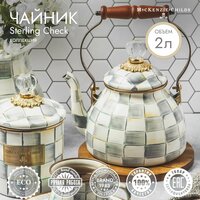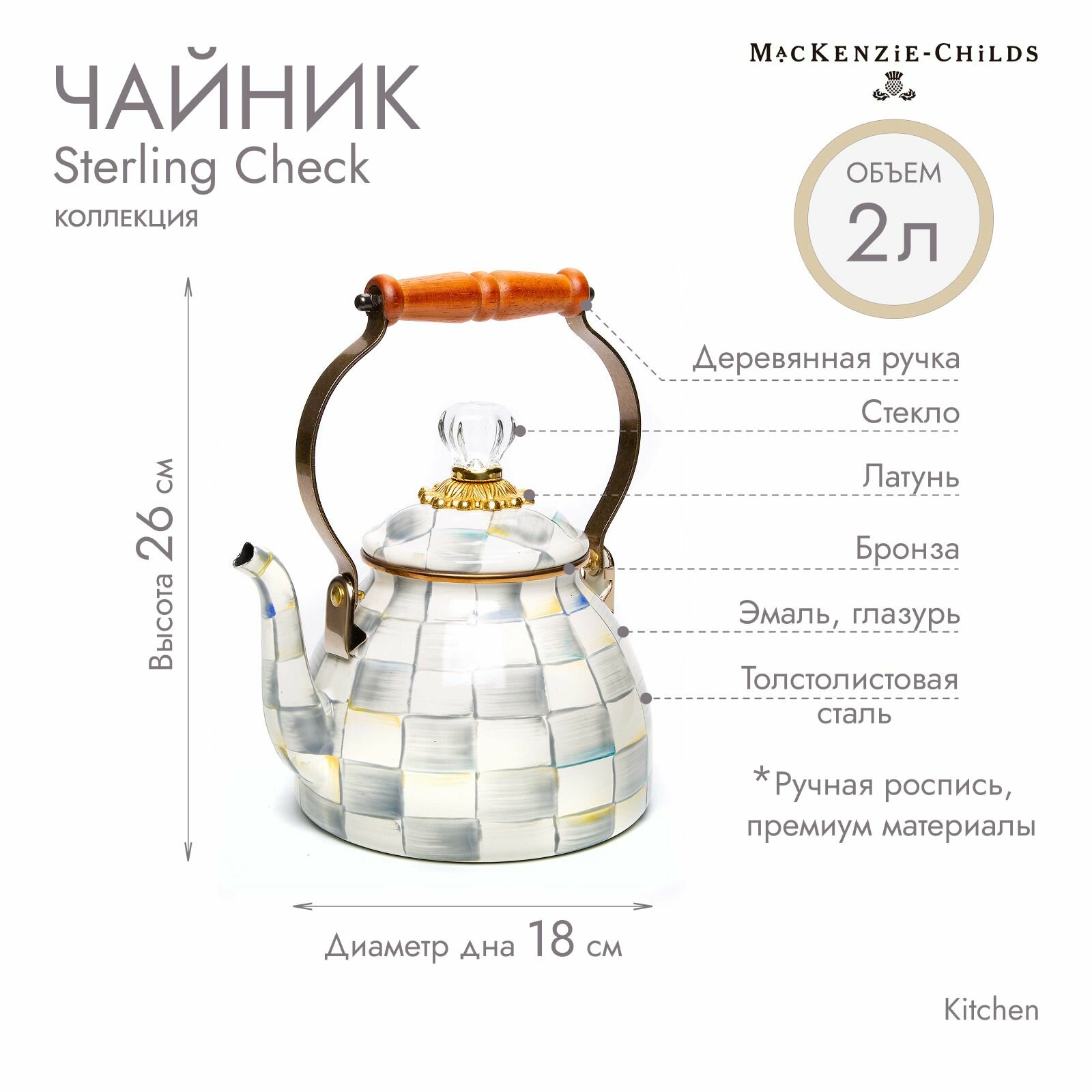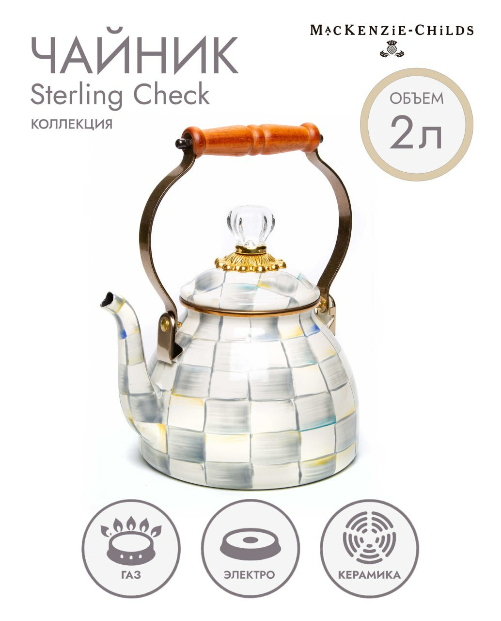 Чайника для плиты, 2 литра, MacKenzie-Childs, чайник эмалированный, Sterling Check, серая, клетка, ручная роспись, бронза, премиум посуда: сравнение цен, характеристики, фото, актуальное наличие и цены.