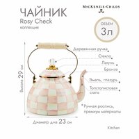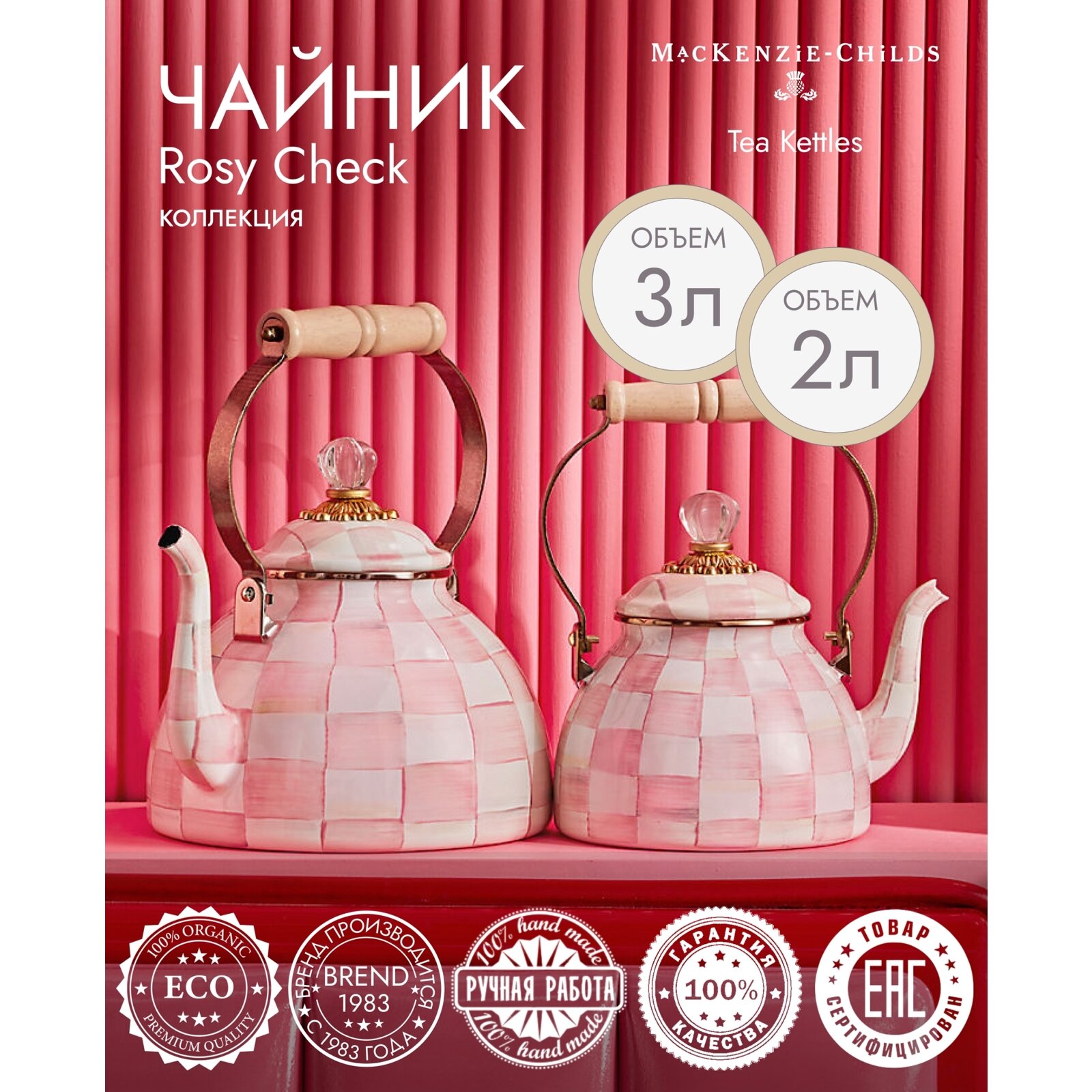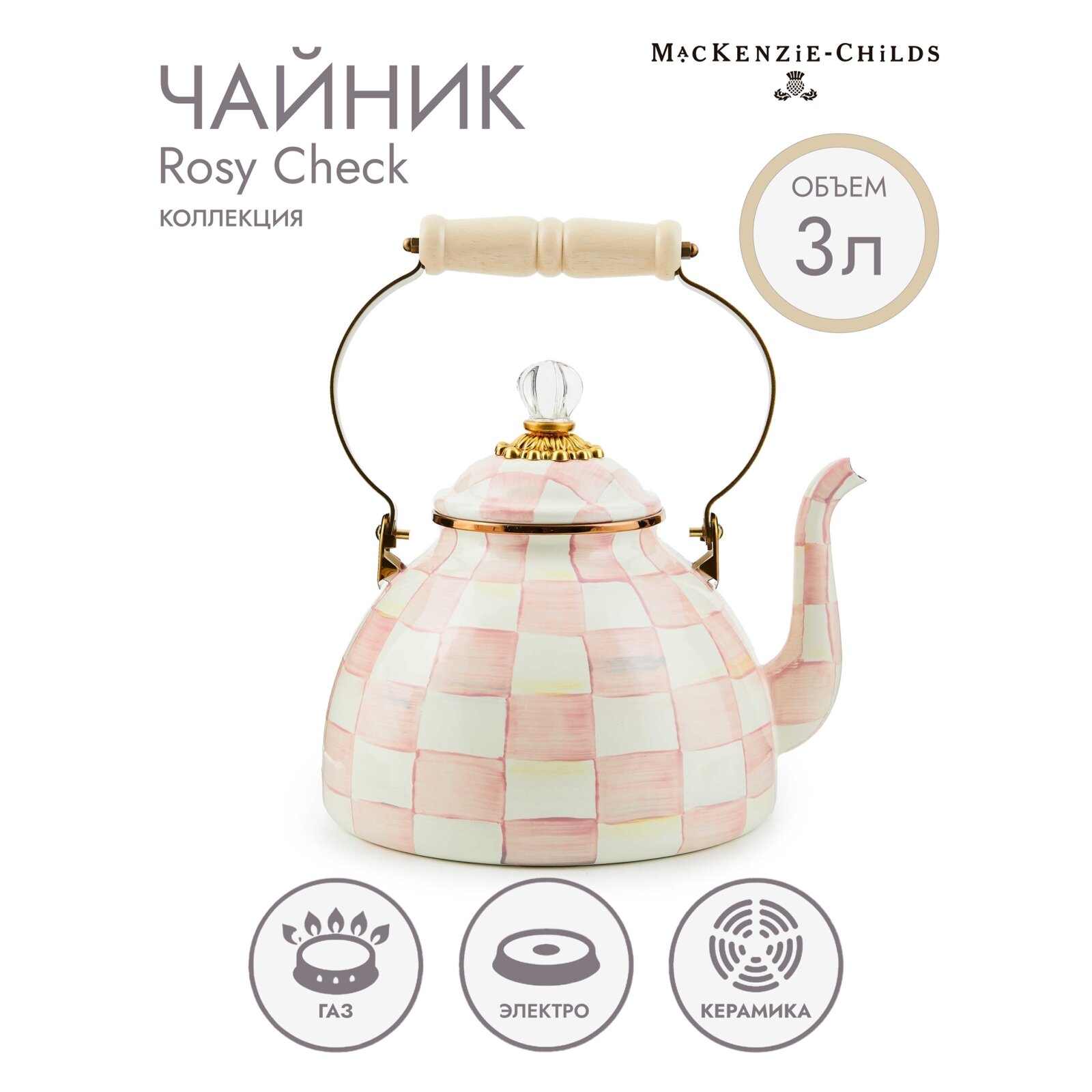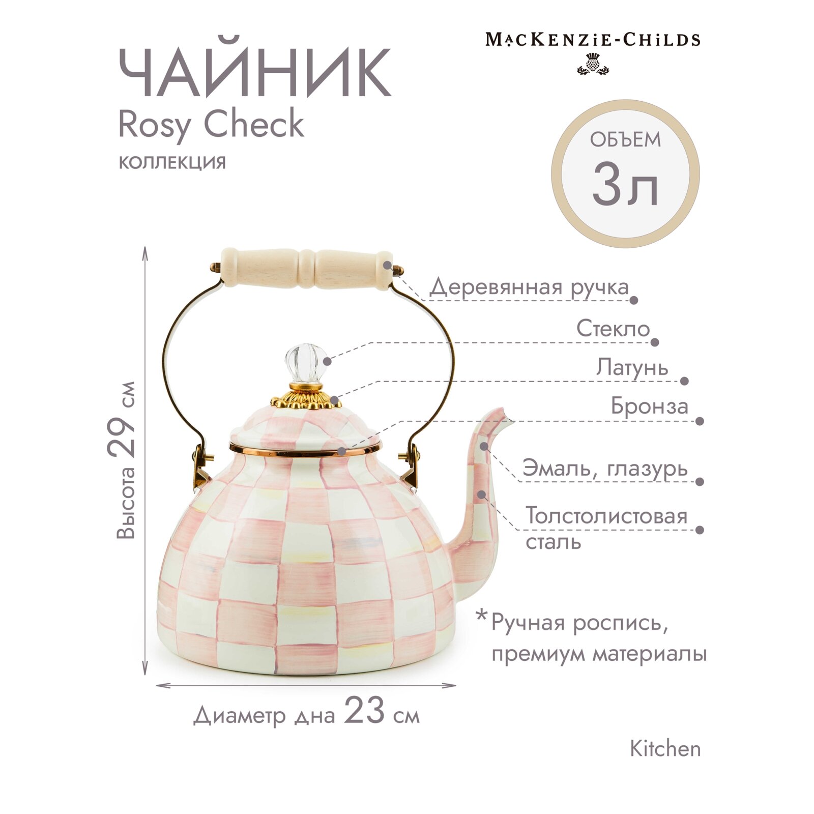 Чайника для плиты, 3 литра, MacKenzie-Childs, чайник эмалированный, Rosy Check, розовый, клетка, ручная роспись, бронза, премиум посуда: сравнение цен, характеристики, фото, актуальное наличие и цены.