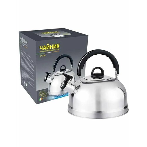Чайник Mallony CASUAL, объем 2.7л, из нержавеющей стали со свистком, зеркальная полировка, предназначен для использования дома или в офисе. Подходит для плит любого типа, поэтому отличается практичностью. Хорошо держит температуру, благодаря чему вода дольше остается горячей. Чайник оснащен свистком, за счет чего вовремя сигнализирует о закипании.