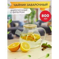 Купить Чайнник заварочный Pomi d’Oro, стекло, фильтр-пружина, бамбуковая крышка, 800мл с доставкой по всей России.