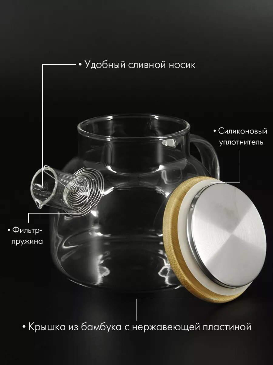 Чайнник заварочный Pomi d’Oro, стекло, фильтр-пружина, бамбуковая крышка, 800мл: сравнение цен, характеристики, фото, актуальное наличие и цены.
