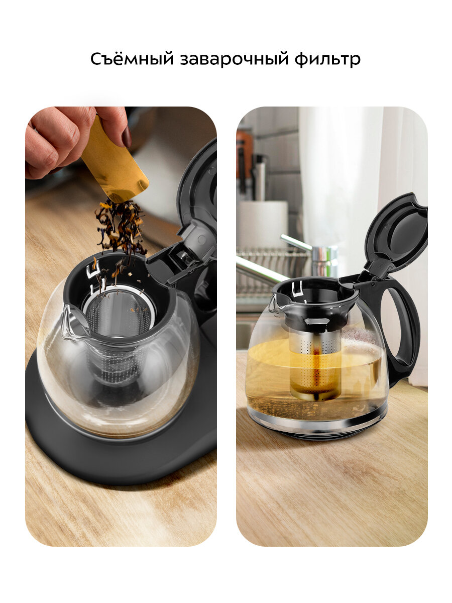 В месте установки заварочного чайника на базу находится платформа с подогревом