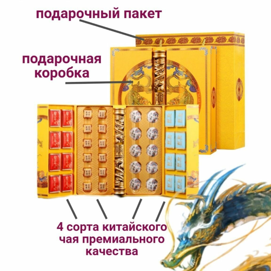 Набор чая представлен из 4-х видов знаменитых сортов Китайского чая: