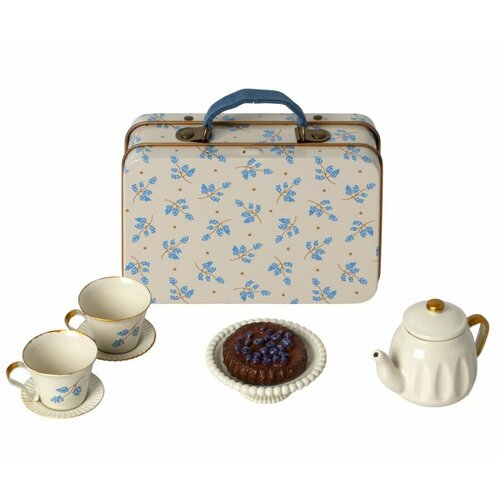 Этот чайный сервиз идеально подходит для лапок мышки. Каждый набор включает в себя все необходимое для уютного времяпрепровождения с чаем, выпечкой и посудой. Поставляется в металлическом чемодане, украшенном принтом Maileg.
