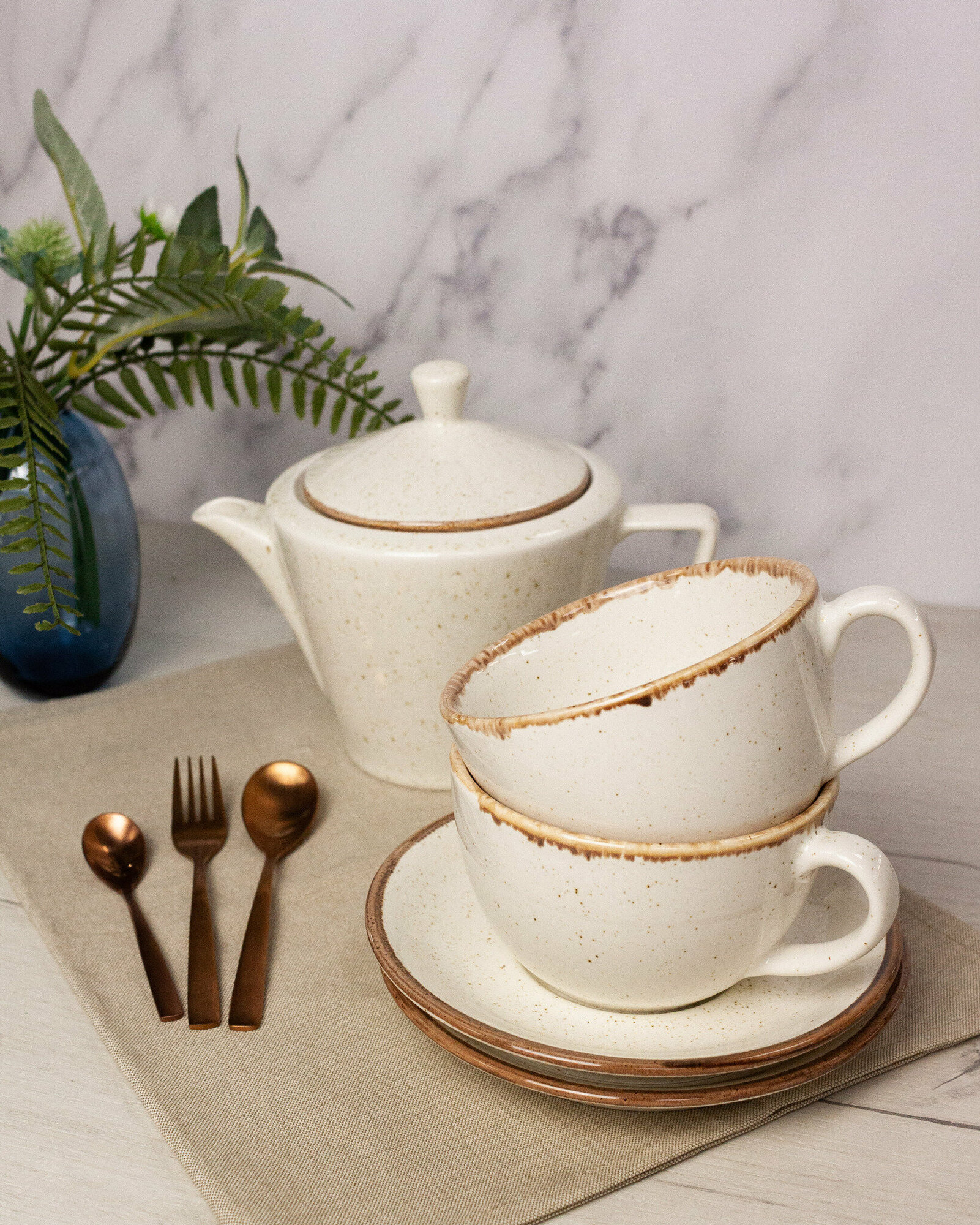 Купить Чайный сервиз Porland Seasons, бежевый, на 2 персоны (Кружка 340 мл — 2 шт; Блюдце 16 см — 2 шт; Чайник 500 мл — 1 шт) с доставкой по всей России.