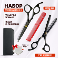 Купить CHARITES / Набор парикмахерских ножниц, прямые 5.5 + филировочные 5.5, расческа, футляр, регулировочный ключ Jag черные с доставкой по всей России.