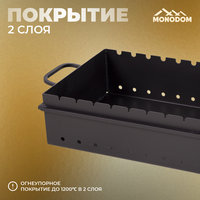 Чаша для мангала Ч-600 изготовлена из прочной стали толщиной 5 мм, что обеспечивает долговечность и надежность конструкции. Размеры чаши составляют 59х35х15 см, что позволяет вместить до 11 шампуров.
