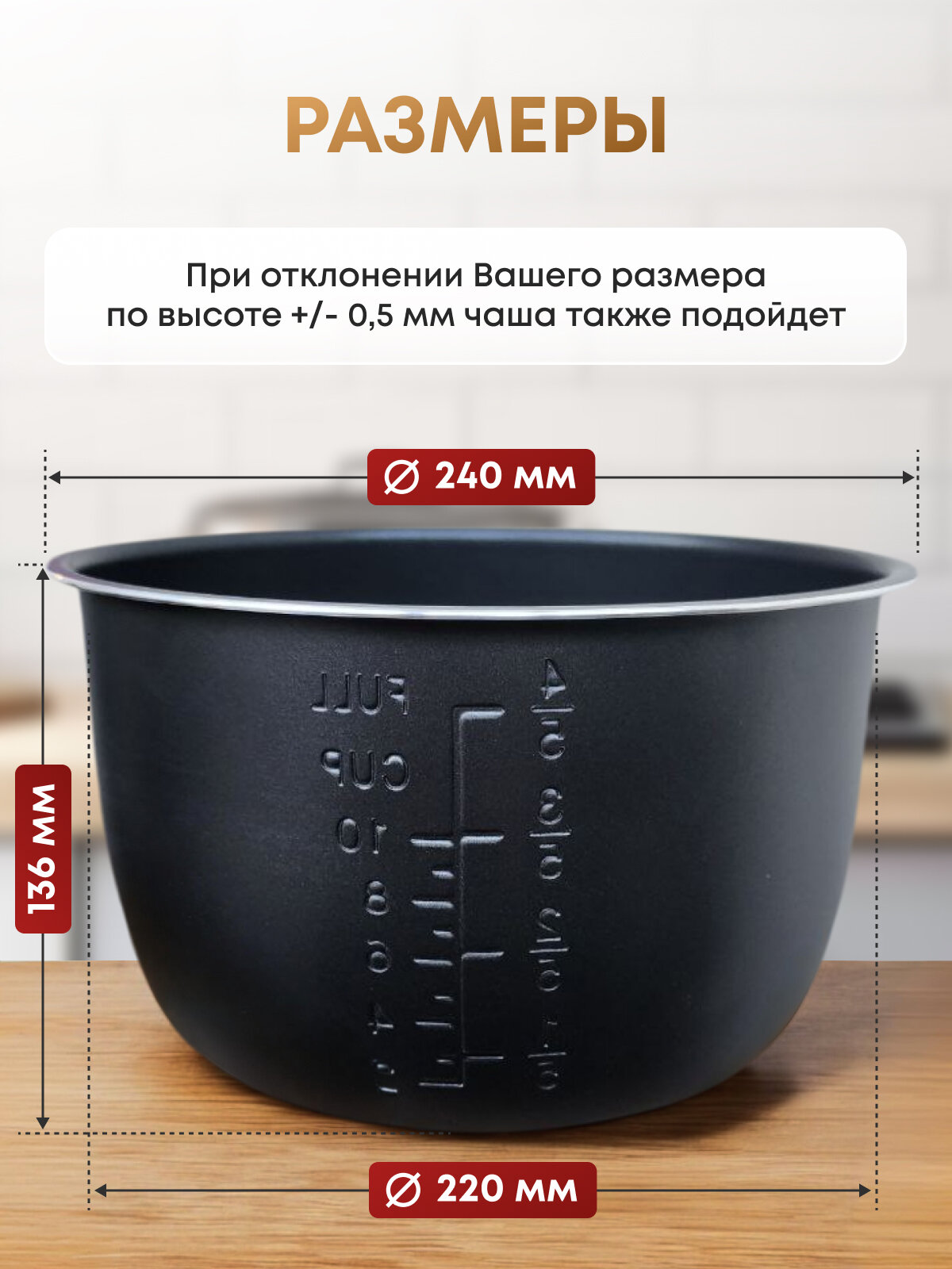 Чаша для мультиварки Redmond 5 л универсальная высота 136 mm: сравнение цен, характеристики, фото, актуальное наличие и цены.