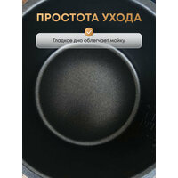 антипригарное покрытие, мерная шкала снаружи, ребристая поверхность дна