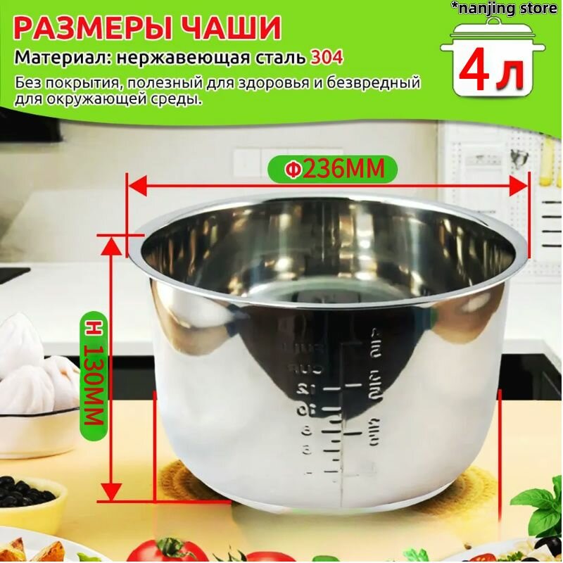 Су-вид для чаша универсальная 4 литров, высота 130 MM, Без покрытия, материал из пищевой нержавеющей стали марки 304: сравнение цен, характеристики, фото, актуальное наличие и цены.