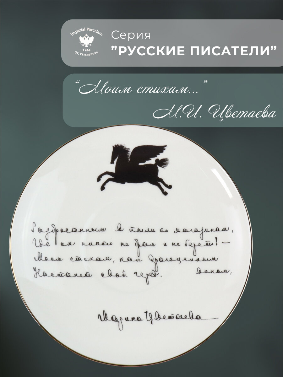 Купить Чашка с блюдцем кофейная 165 мл. Форма «Майская», рисунок «Русские писатели, Цветаева М. И.». Фарфор. Императорский фарфоровый завод ИФЗ ЛФЗ с доставкой по всей России.