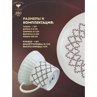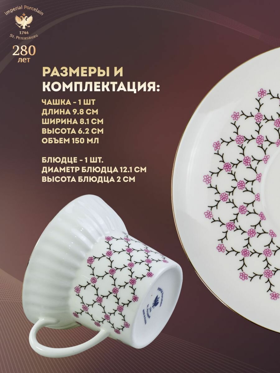 Чайная пара. Императорский фарфоровый завод. Форма «Волна», рисунок «Розовая сетка». Костяной фарфор. 155 мл.: сравнение цен, характеристики, фото, актуальное наличие и цены.