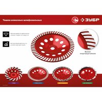 Алмазная чашка ЗУБР 33376-230, используется на УШМ для шлифования бетонных материалов, гранита, природного и искусственного камня. Не требует принудительного водяного охлаждения. Имеет отверстия для естественного охлаждения чашки в процессе шлифования. Корпус алмазной чашки изготовлен из высокопрочной стали. Высота алмазных сегментов 5 мм обеспечивает продолжительный рабочий ресурс шлифовальной чашки (до 700 квадратных метров площади). Два ряда алмазных сегментов для равномерного шлифования и большого объема работ. Фрезерованное основание чашки не допускает биения и дисбаланса в процессе работы. Каждое изделие проходит строгий контроль качества, особое внимание уделяется сбалансированности, т. к. инструмент работает на больших оборотах.