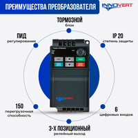 Купить Частотный преобразователь 1,5 кВт вх:1ф x 220В/вых: 3ф х 220В. INNOVERT ISD152U21B, Ток 7.0 А с доставкой по всей России.