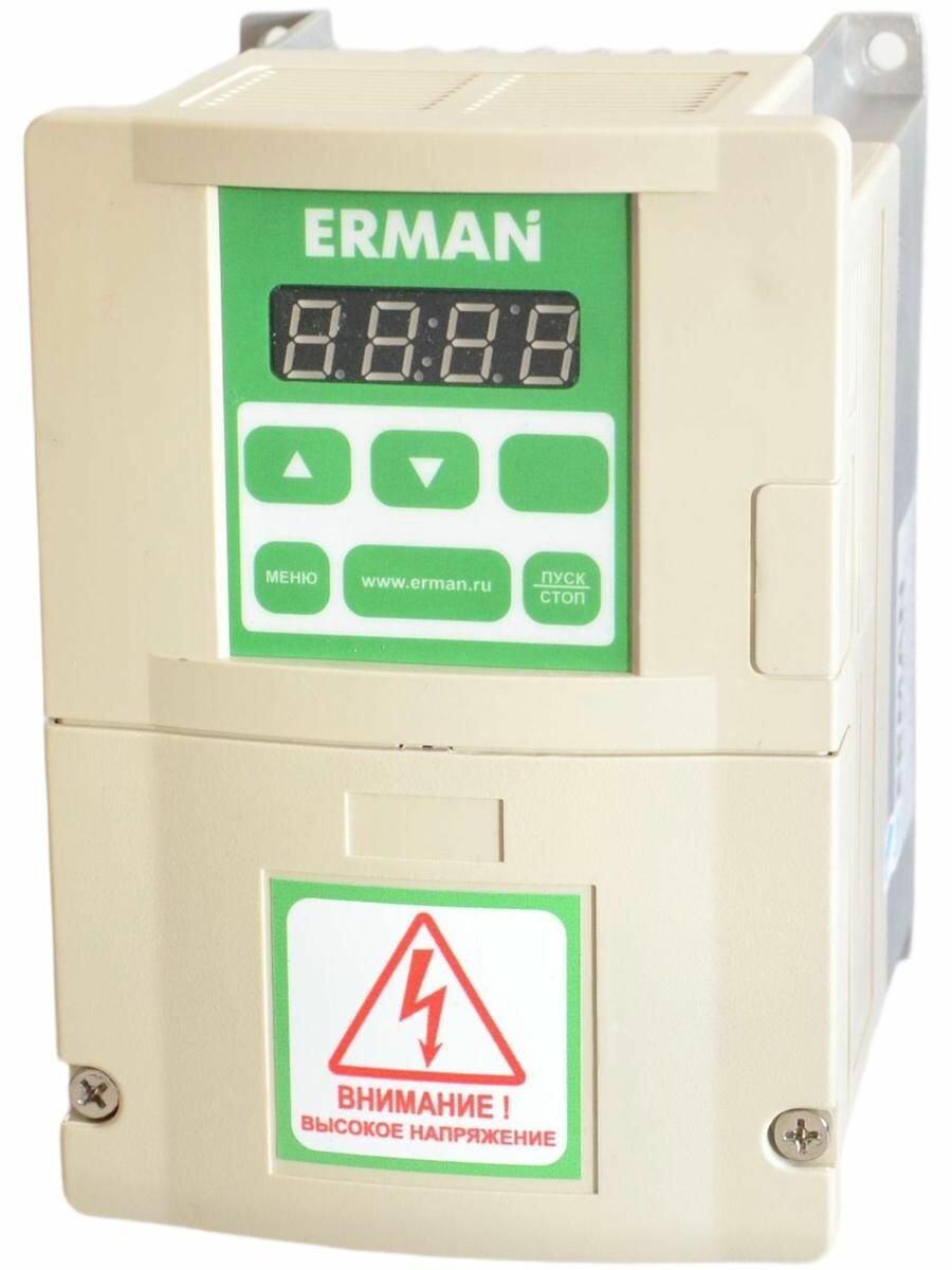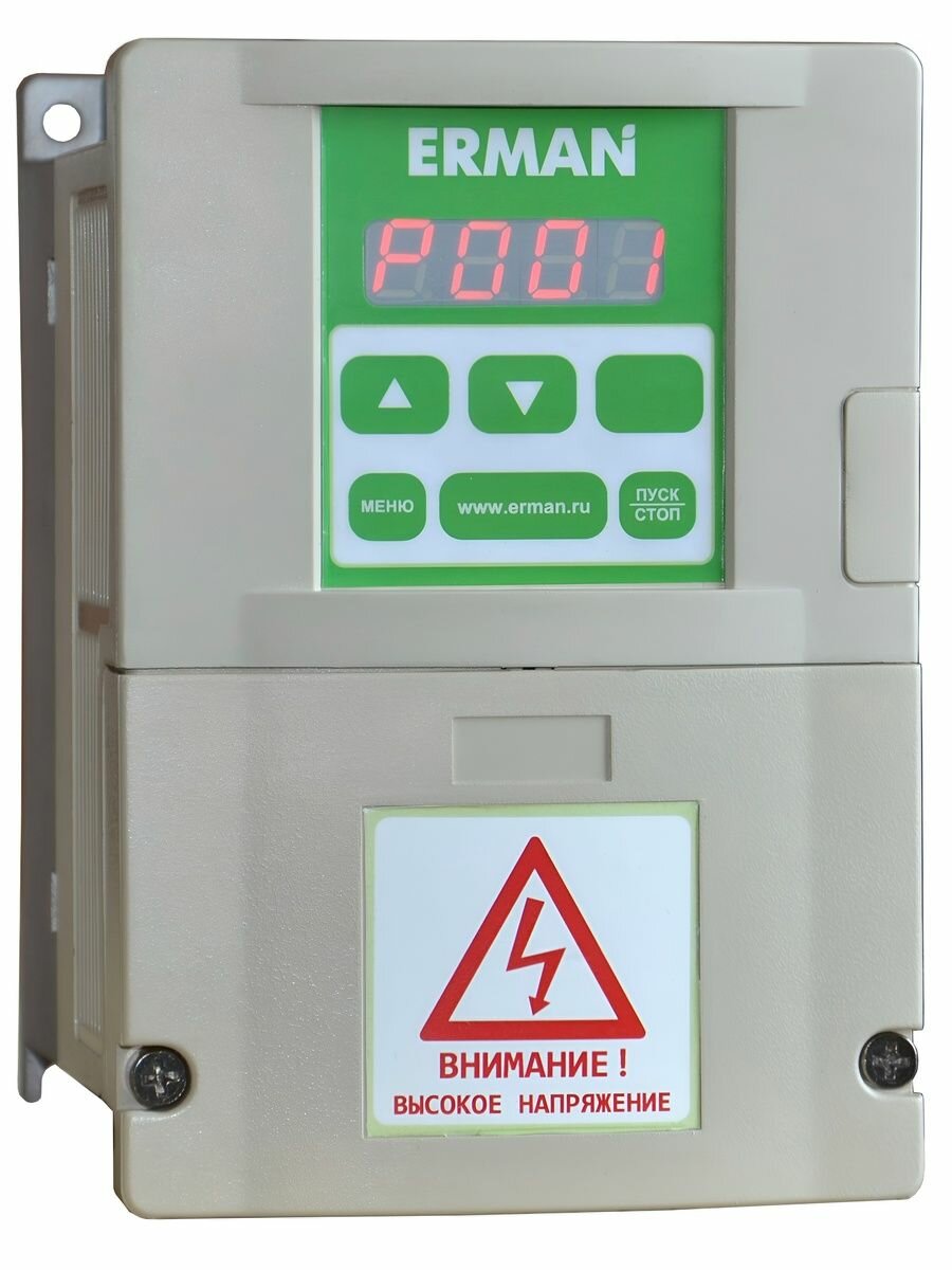 Частотный преобразователь для насоса Ermangizer ER-G-220-02-1,5 предназначен для управления скважинным насосом (погружным или поверхностным), плавного пуска и остановки насоса и поддержания постоянного напора в системе водоснабжения, защиты от сухого хода насоса.