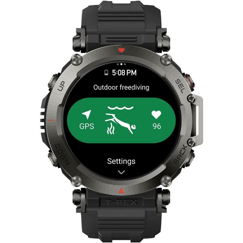 Дисплей часов HD AMOLED может достигать максимальной яркости 1000 нит при ярком наружном освещении, обеспечивая сверхчистую видимость в любых условиях. Эти прочные часы изготовлены из сверхпрочной нержавеющей стали 316L, что делает их идеальным спутником в приключенях. Запатентованный мостик и кнопки, устойчивые к грязи, созданы для того, чтобы выдерживать любые воздействия, защищая аппаратную часть часов от отложений и мусора. Наслаждайтесь максимальным комфортом во время всех ваших приключений. Разработанный для ношения в течении всего дня, Amazfit T-Rex Ultra оснащен запатентованными регулируемыми наконечниками и силиконовым ремешком, впитывающим пот - идеально подходит для искателей приключений всех форм и размеров. Эти умные часы, устойчивые к экстремальным температурам 70℃ и холоду -40℃, а также к влажности, ударам и многим другим факторам, доказали свою прочность, пройдя 15 испытаний военного уровня. Загрузите офлайн-карту из Zepp Приложения к часам, и ваше местоположение на карте будет обновляться в режиме реального времени по мере навигации с помощью соответствующего файла маршрута. Часы используют сигналы L1 и L5 для невероятно точного двухдиапазонного определения местоположения по GPS и поддерживают шесть спутниковых систем для более широкого охвата по всему миру. Импортируйте файлы маршрутов из Zepp Приложения и следите за своим движением в режиме реального времени на дисплее. Сохраняйте координаты и любимые маршруты для быстрого доступа. Когда вам нужно вернуться назад, часы могут показать вам прямую линию до вашей начальной точки. Если вы стремитесь к индивидуальности и разнообразию в каждой минуте своей жизни, то часы Huami Amazfit T-Rex Ultra станут вашим надежным партнером. С более чем 120 различными циферблатами, эти часы предоставляют вам широкий выбор возможностей для индивидуальной кастомизации и настройки дизайна. Amazfit T-Rex Ultra поддерживают более 160 видов тренировок, включая прыжки с парашютом, пешие прогулки, триатлон и многое другое. Занимайтесь фридайвингом до 30 метров с Amazfit T-Rex Ультра. Сверхъяркий AMOLED-дисплей позволяет легко отображать ключевую информацию, такую как глубина и температура воды. Часы могут автоматически определять 25 типов упражнений в спортивном режиме силовых тренировок, отслеживая количество повторений, подходов и время отдыха. После тренировки, Zepp Приложение отобразит выполненные вами упражнения и какие группы мышц вы задействовали. Вы даже можете сохранить названия до 100 собственных вариантов для персонализированных журналов тренировок. Часы обладают высокой энергоэффективностью, что обеспечивает длительное время работы в обычном режиме – до 20 дней, а при использовании GPS – до 28 часов. Они также поддерживают Bluetooth 5.0 и Wi-Fi (2,4 ГГц), что позволяет подключиться к другим устройствам и передавать данные. Одной из ключевых особенностей Amazfit T-Rex Ultra является наличие биометрического датчика BioTracker PPG, который позволяет пользователю контролировать свои физические показатели в режиме реального времени. Он способен отслеживать уровень кислорода в крови, сердечный ритм, сон и другие показатели, что позволяет эффективнее планировать свою физическую активность и следить за своим здоровьем. Придайте импульс своим приключениям, загрузив несколько увлекательных мини-приложений, в том числе два новых приложения на 