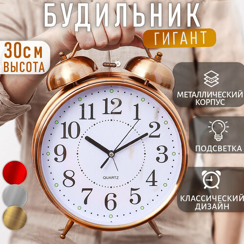 Часы Будильник гигант медного цвета с подсветкой Эврика, часы настольные большие, подарочные: сравнение цен, характеристики, фото, актуальное наличие и цены.