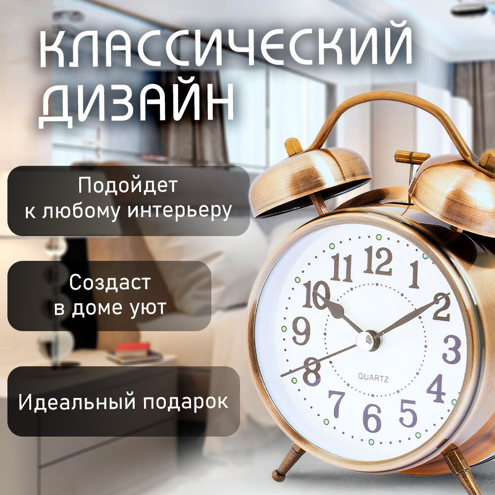 Купить Часы будильник настольные классические D-10 см медный цвет Эврика детские, взрослые, подарочные мужские на 23 февраля, женщине на 8 марта, ребенку, на стол, в спальню с доставкой по всей России. Часы будильник настольные классические D-10 см медный цвет Эврика детские, взрослые, подарочные мужские на 23 февраля, женщине на 8 марта, ребенку, на стол, в спальню: сравнение цен, характеристики, фото, актуальное наличие и цены.