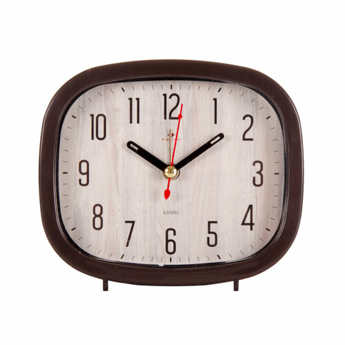 Часы будильник Рубин В5-008, Классика, корпус темно-коричневый, кварц, пластик/стекло, прямоугольные, 12,5х10,5см