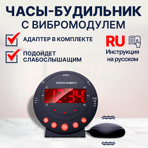 Часы-будильник TS-BC600 SOVANCI, пластик, арабские цифры, подсветка, вибрация, 15 см x 15см x 6,5 см: сравнение цен, характеристики, фото, актуальное наличие и цены.