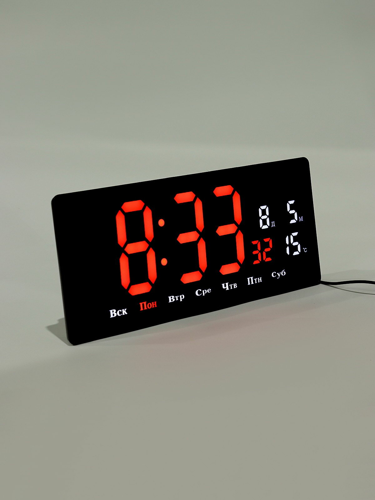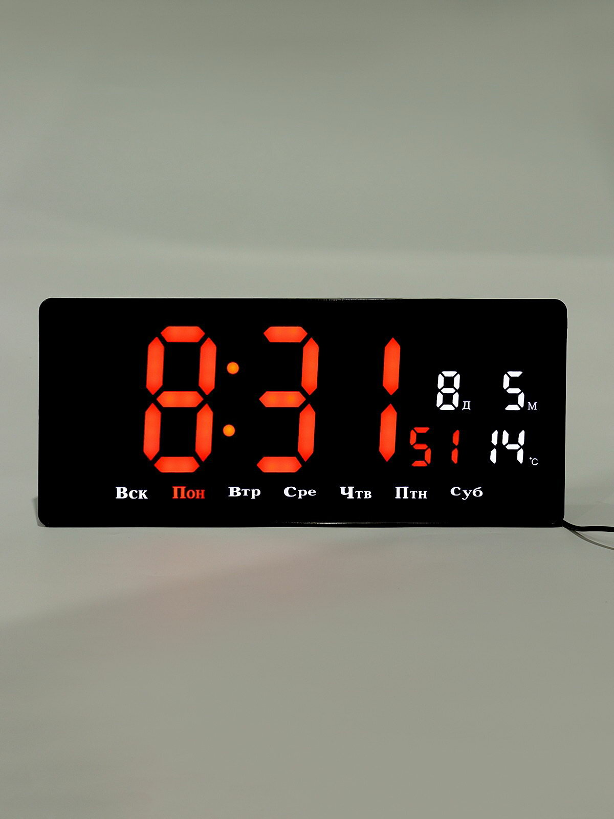 Часы электронные настенные, 36.2×15.5 см, красные цифры, тип питания: от батареек: сравнение цен, характеристики, фото, актуальное наличие и цены.