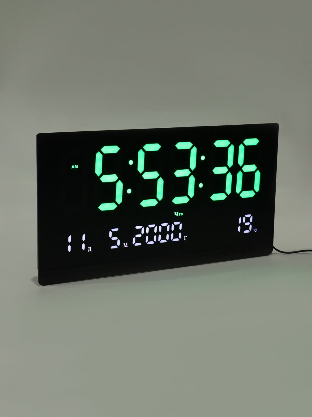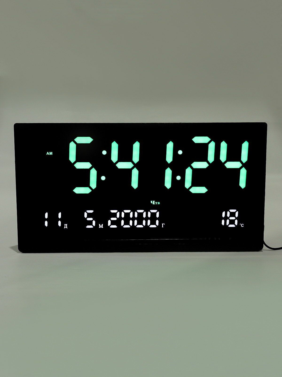 Часы электронные настенные, 47.5×25.3 см, зелёные цифры, тип питания: от батареек: сравнение цен, характеристики, фото, актуальное наличие и цены.