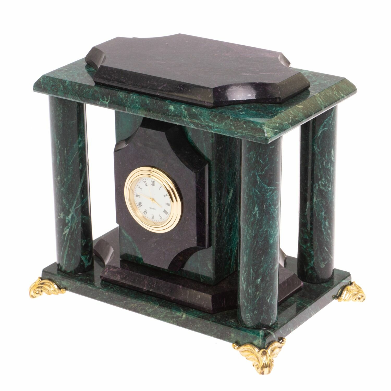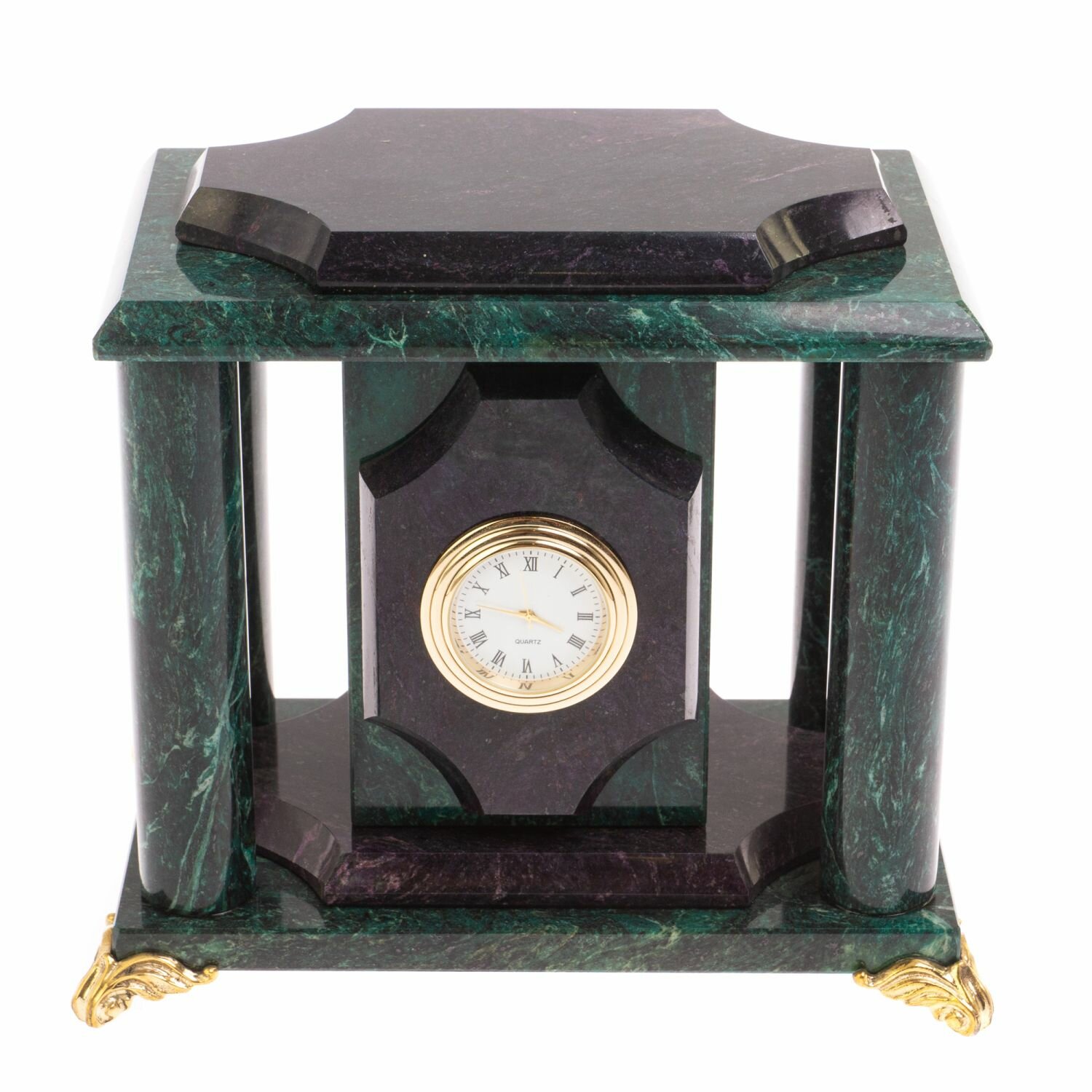 Часы из шабровского змеевика 17х12х17 см размером 17х12х17 см и весом 2800 г.