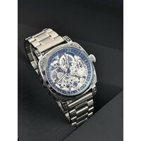 автоподзавод, антибликовое покрытие стекла, бесшумный механизм, подсветка стрелок, прозрачный корпус, скелетон