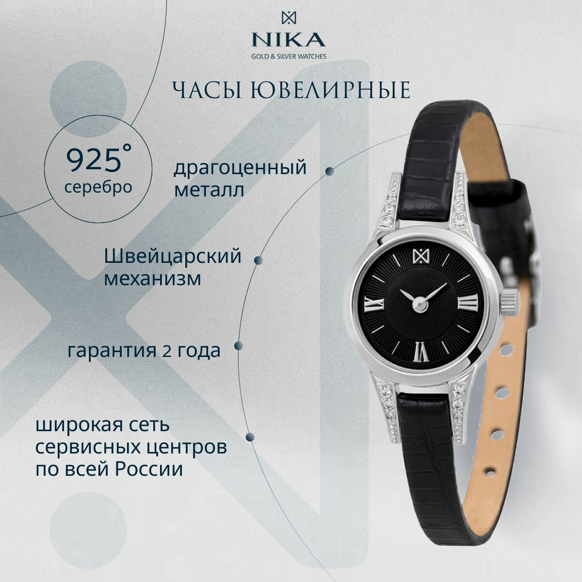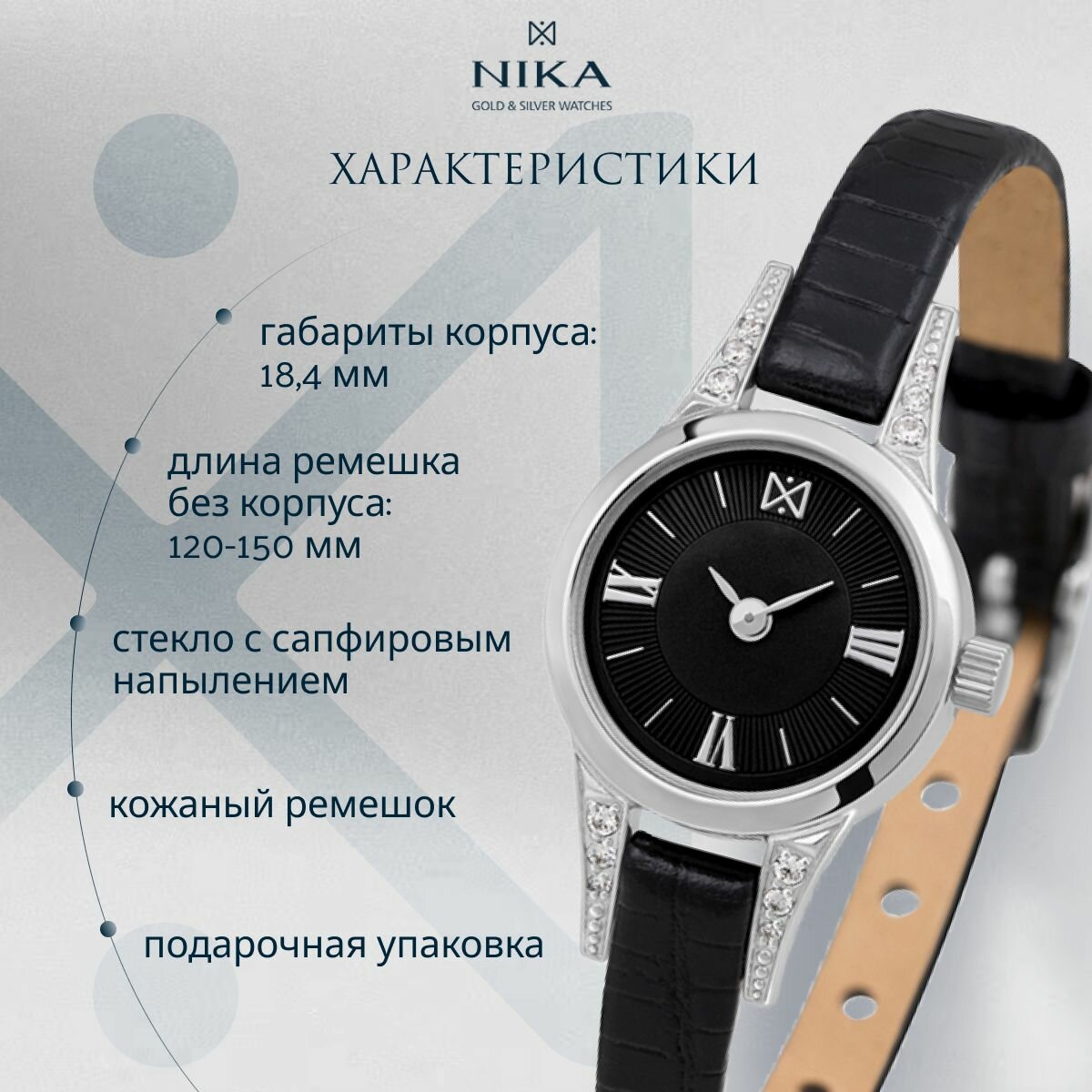 Наручные часы НИКА Viva, серебро, фианит, черный: сравнение цен, характеристики, фото, актуальное наличие и цены.