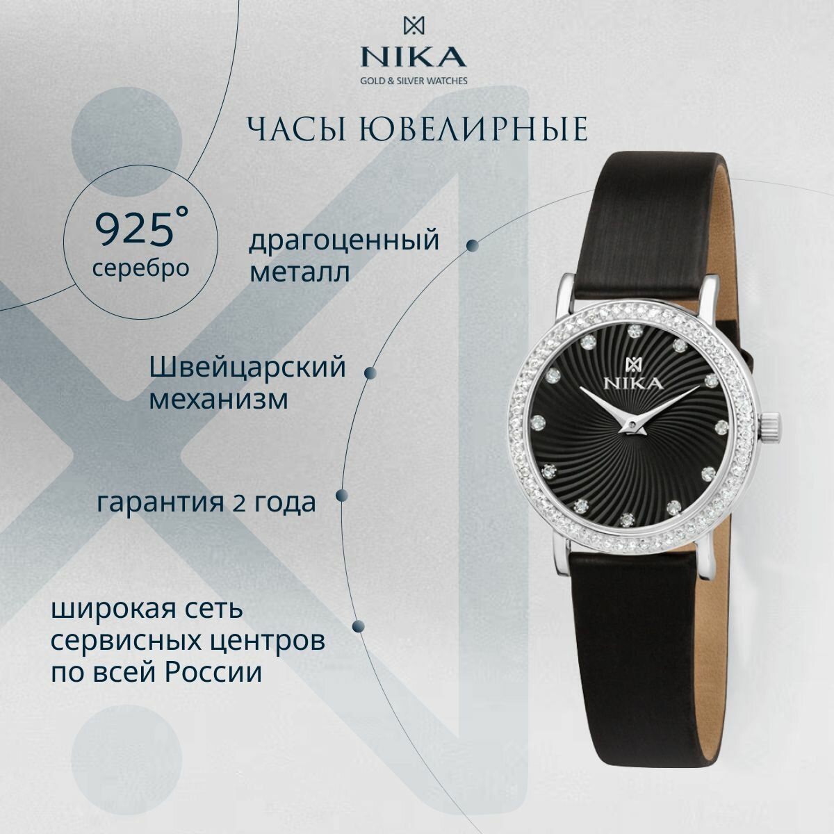 Наручные часы НИКА Slimline, серебро, фианит, черный