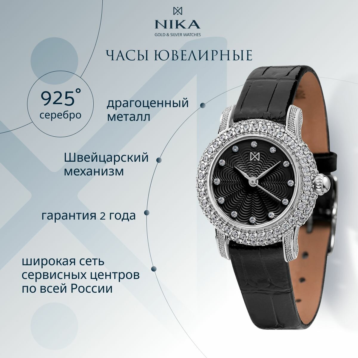 Купить Наручные часы НИКА, серебро, фианит, черный с доставкой по всей России.