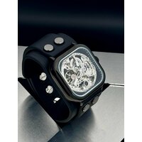 автоподзавод, антибликовое покрытие стекла, бесшумный механизм, прозрачный корпус, скелетон