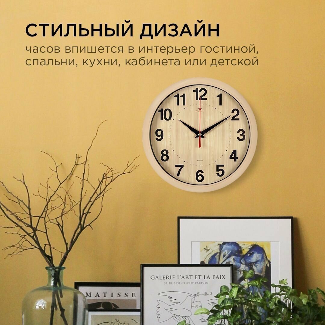 Купить Часы настенные круглые Рубин Классика 2222-342 бежевого цвета для дома спальни кухни гостиной дачи офиса с плавным ходом и арабскими цифрами, корпус пластик и минеральное стекло, работа от пальчиковой батарейки АА, диаметр 22 см с доставкой по всей России. Часы настенные круглые Рубин Классика 2222-342 бежевого цвета для дома спальни кухни гостиной дачи офиса с плавным ходом и арабскими цифрами, корпус пластик и минеральное стекло, работа от пальчиковой батарейки АА, диаметр 22 см: сравнение цен, характеристики, фото, актуальное наличие и цены.
