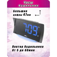 | Дополнительная информация | декоративная подсветка внизу (с функцией отключения), регулировка яркости свечения и звука будильника; формат времени 24 часа, 2 будильника с отложенным сигналом; высота цифр - 47 мм, повтор будильника от 5 до 60 мин; сетевой адаптер 220В; резервное питание (только для сохранения текущих настроек) CR2032 |