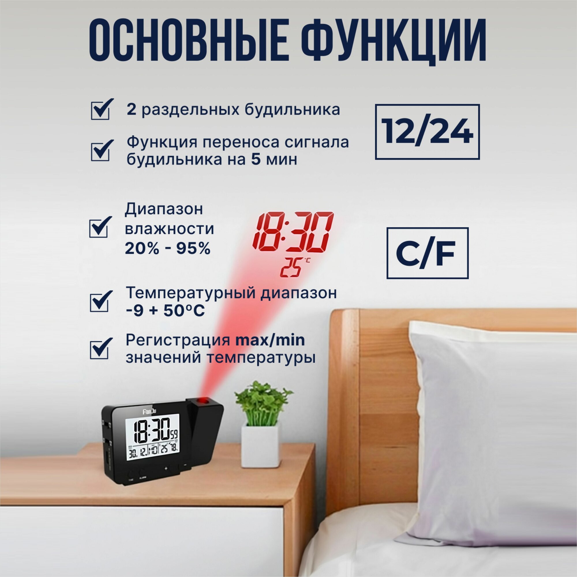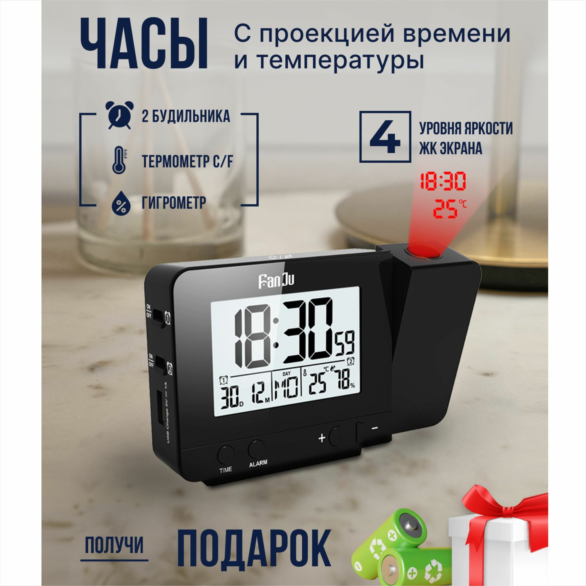 Часы настольные электронные с будильником и проекцией на потолок/стену. Термометр гигрометр календарь: сравнение цен, характеристики, фото, актуальное наличие и цены.